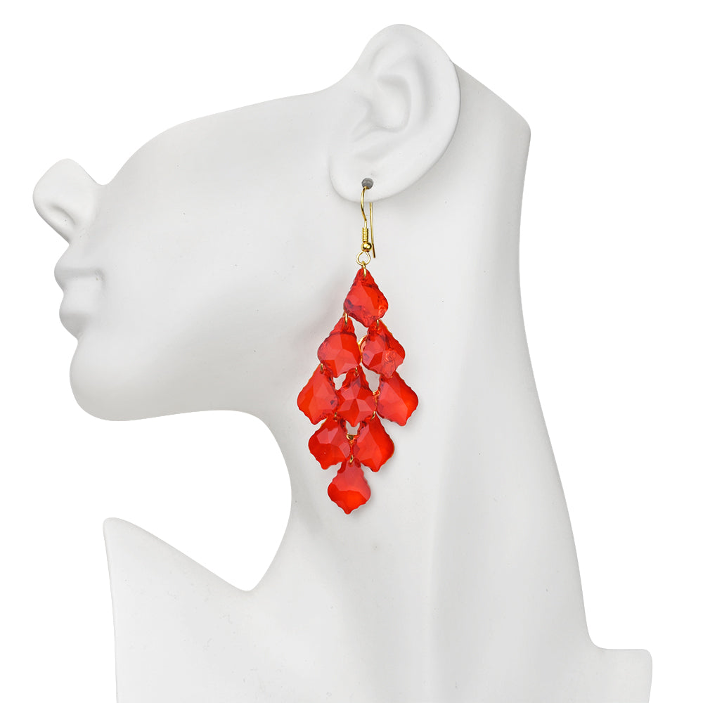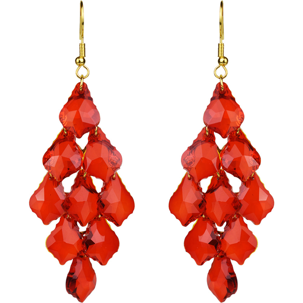 Divine Crystal Chandelier French Wire Earrings (Goldtone/Ruby Red)
