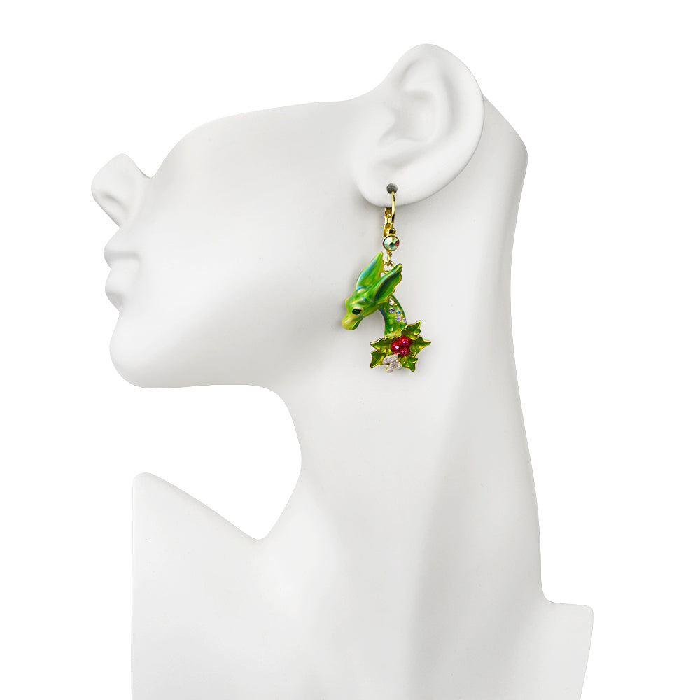 Holiday Dreams Dragon Leverback Earrings (Goldtone)