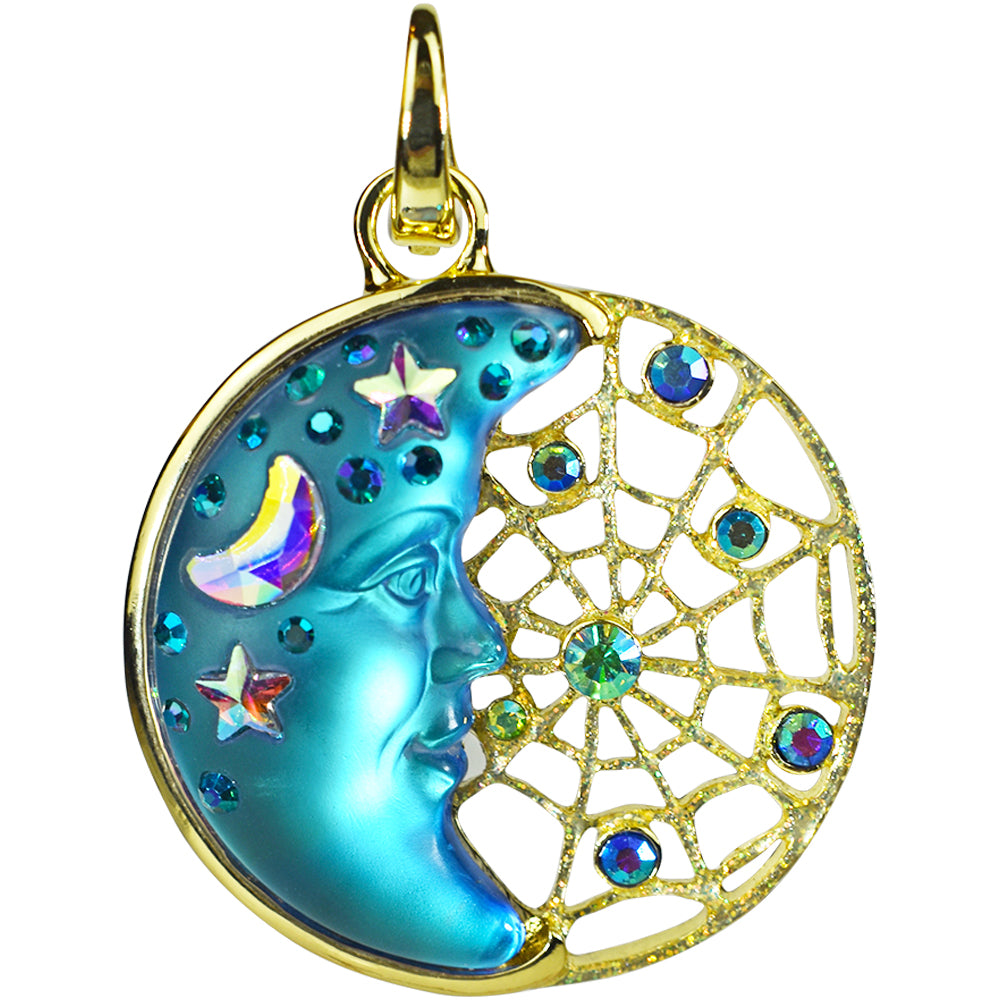 An add a charm for the ages, featuring a sparkling and color changing crescent moon stone with a twinkling metallic web that allows only good thoughts into our hearts and minds.