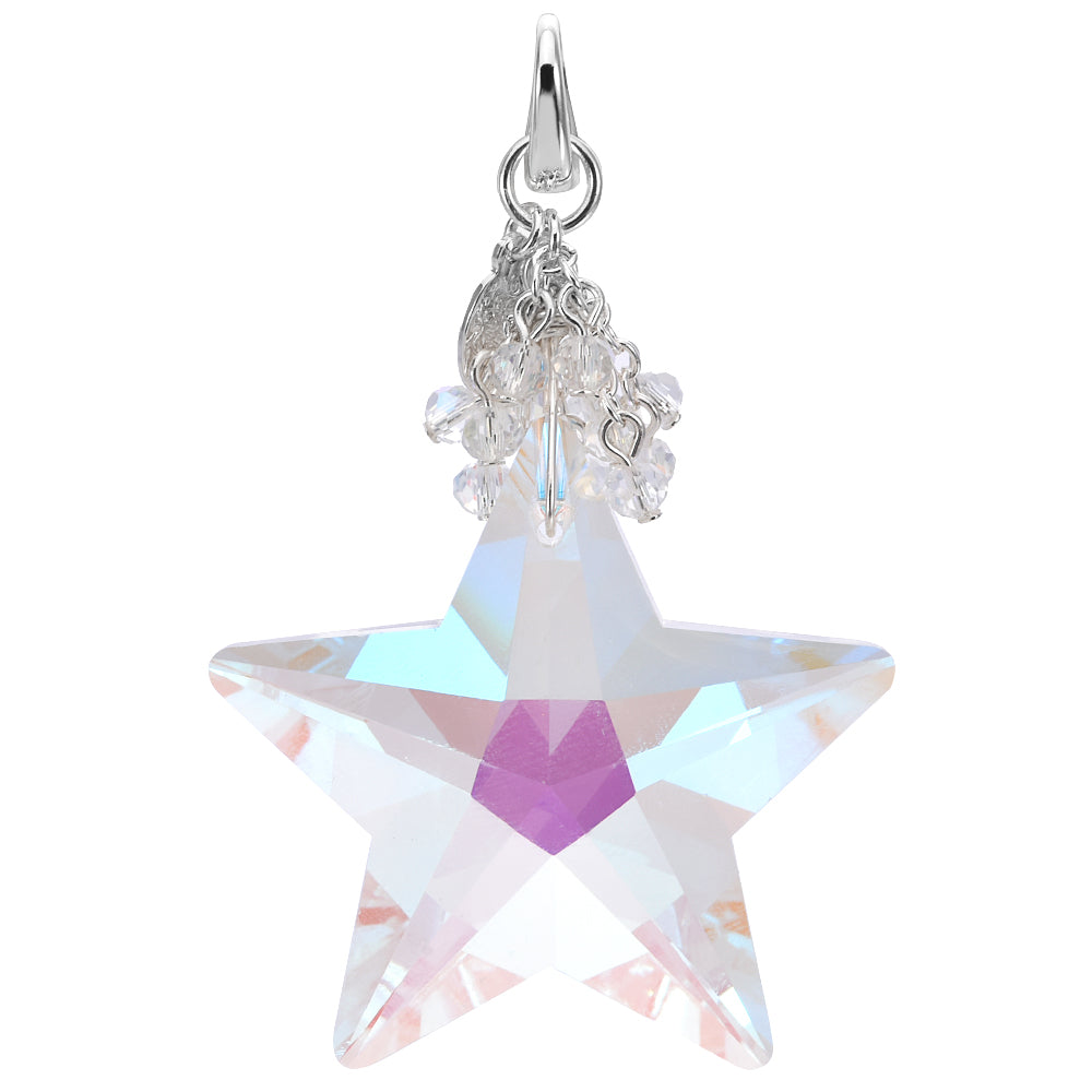 Crystal Star Open Ring Charm (Sterling Silvertone)