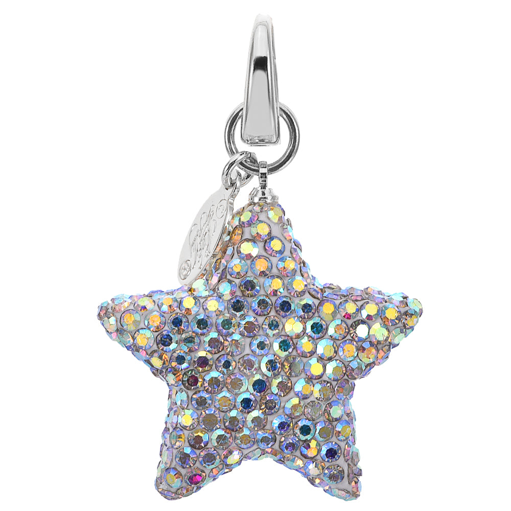 This open ring charm unveils a luminious star, its aurora borealis crystals shimmering with the ever-changing hues of dawn and twilight.