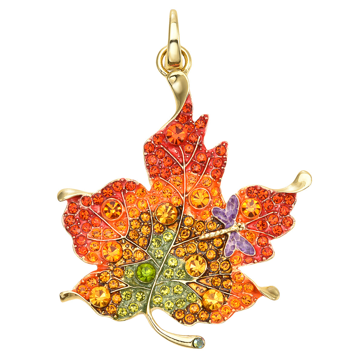 The Festival of Fall Open Ring Charm features a fall leaf shimmering with crystals in rich autumn hues.