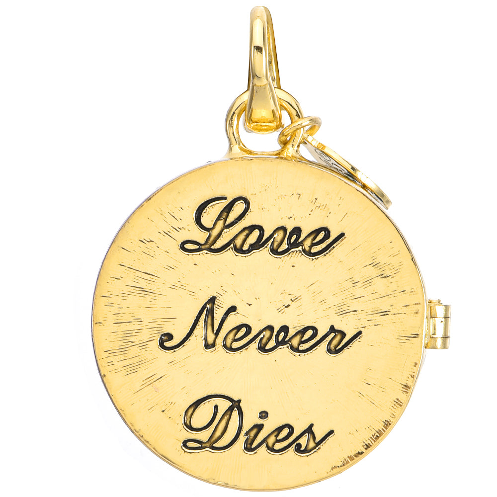 Engraved on the back of the locket is a reminder that “Love Never Dies”.