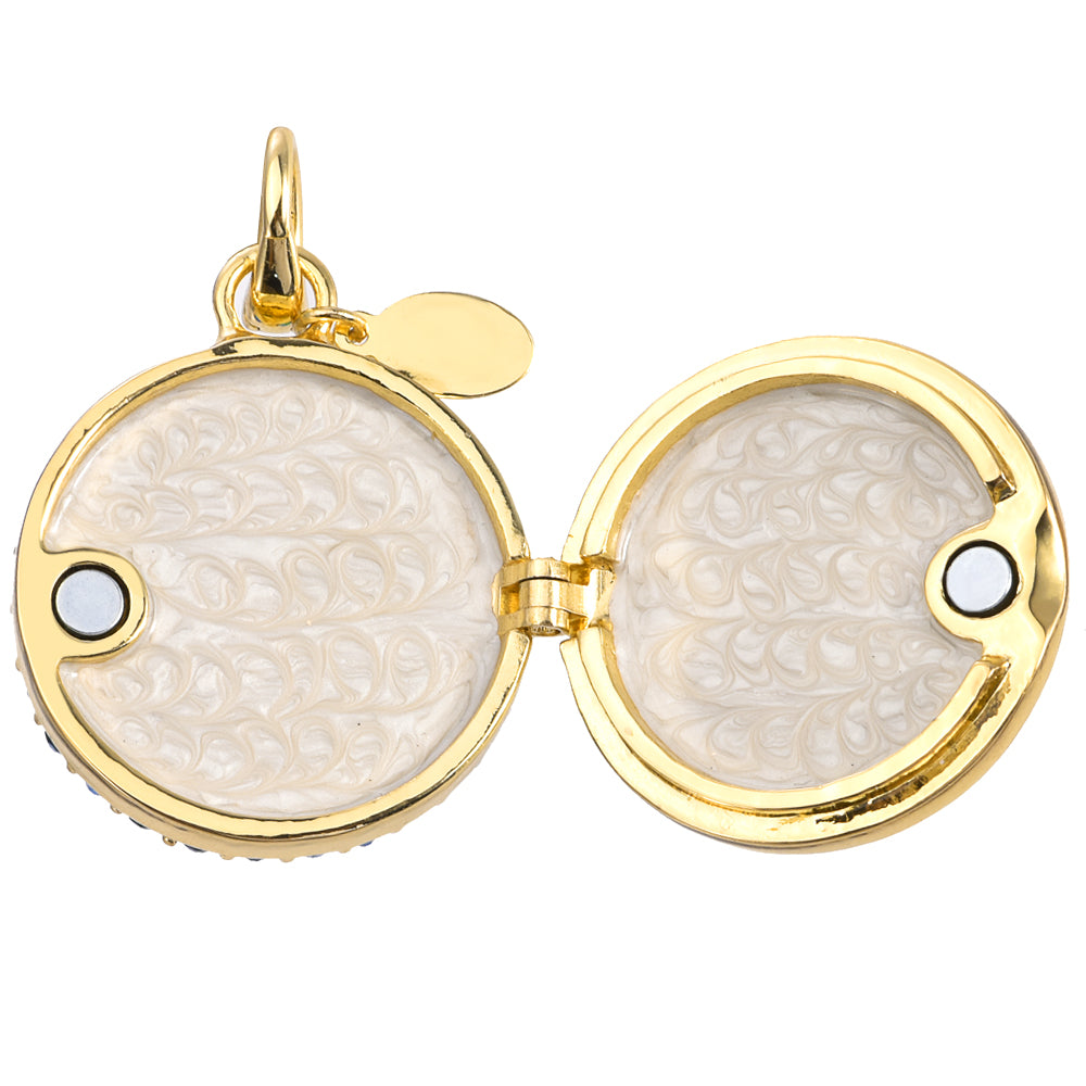 Love Never Dies Mystic Seaview Moon Locket Open Ring Charm (Goldtone/Mystic Blue Sphinx)