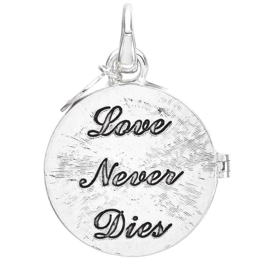 Engraved on the back of the locket is a reminder that “Love Never Dies”.