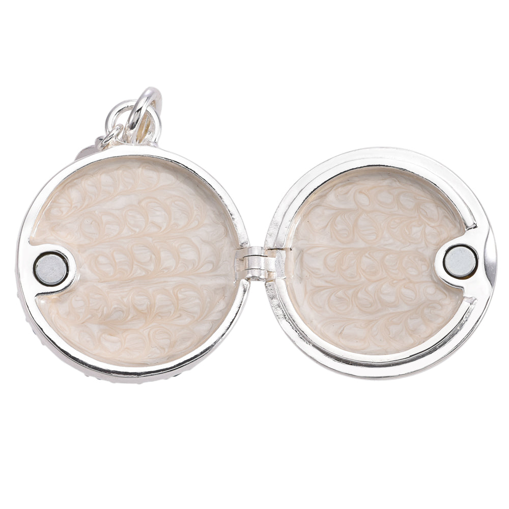Love Never Dies Mystic Seaview Moon Locket Open Ring Charm (Sterling Silvertone/Mystic Blue Sphinx)