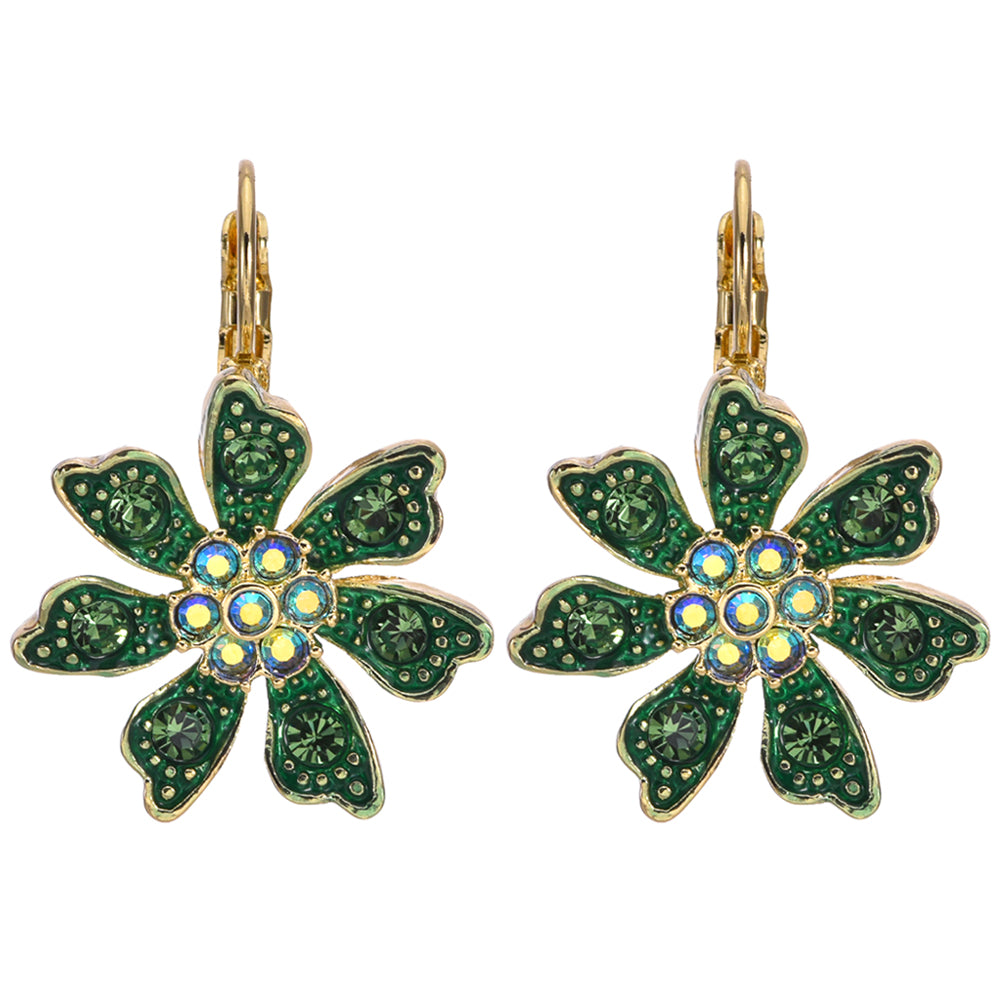 Precious Memories Flower Leverback Earrings (Goldtone)