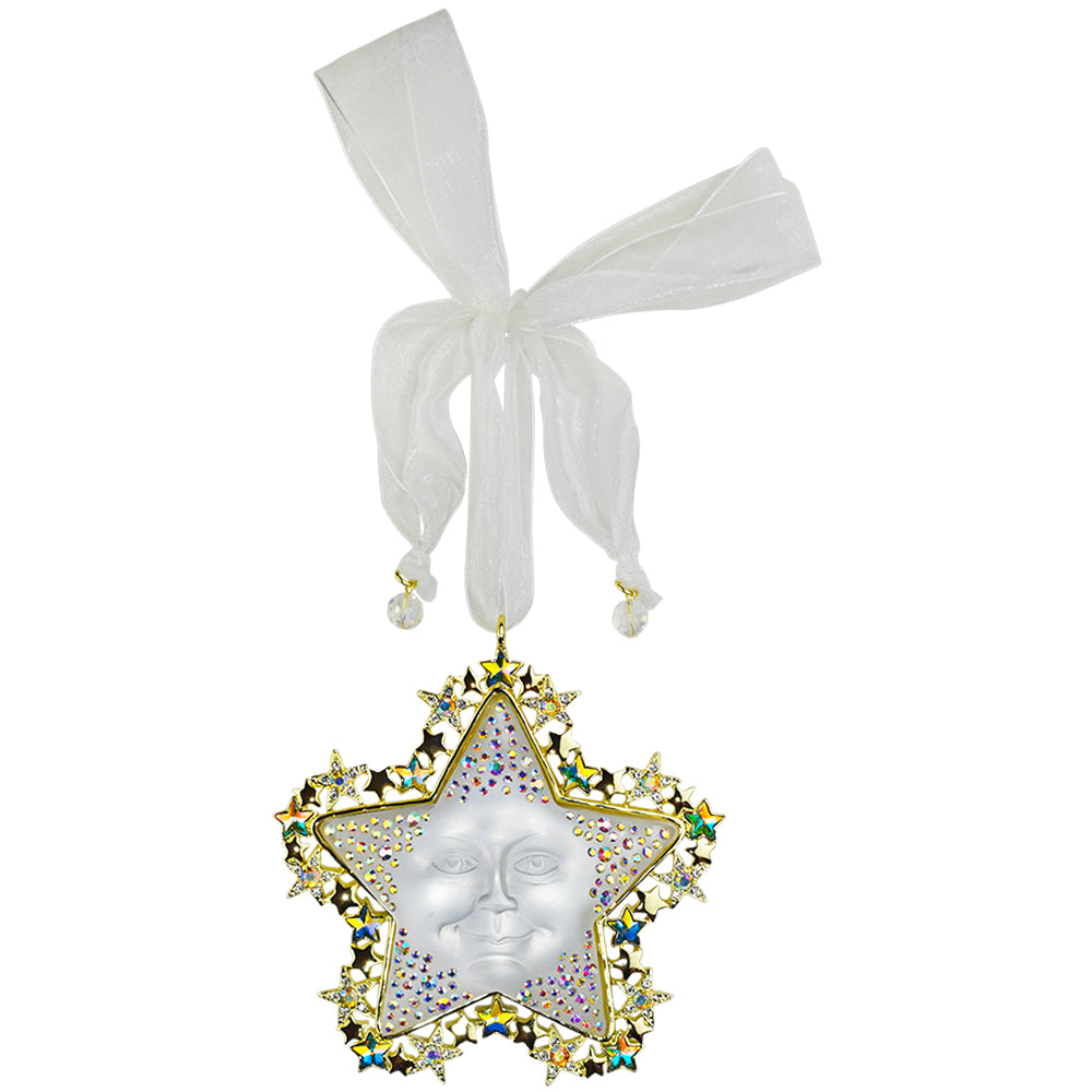 The ethereal Star Rider ornament unveils a benevolent cosmic emissary- a resplendent star with a kind and gentle face, casting its warm glow across the universe.