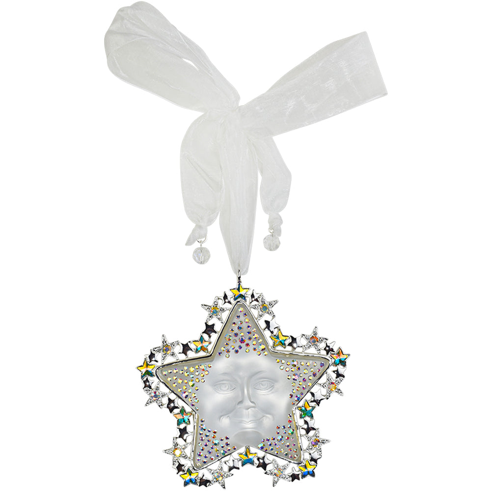 The ethereal Star Rider ornament unveils a benevolent cosmic emissary- a resplendent star with a kind and gentle face, casting its warm glow across the universe.