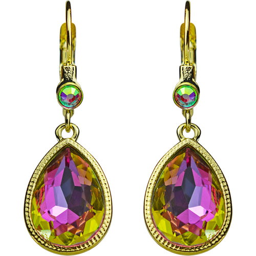 Crystal Mystic Teardrop Leverback Earrings (Goldtone/Iridis Pink)