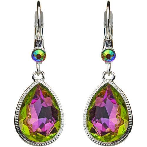 Crystal Mystic Teardrop Leverback Earrings (Sterling Silvertone/Iridis Pink)