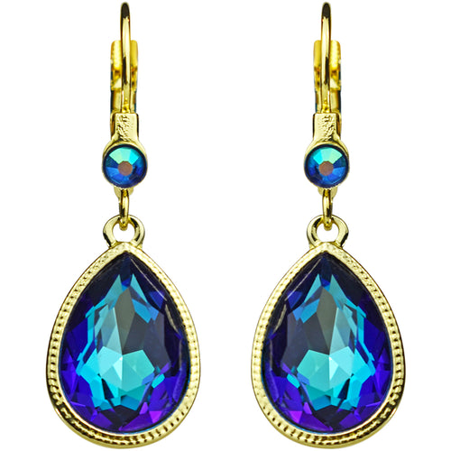 Crystal Mystic Teardrop Leverback Earrings (Goldtone/Blue Sphinx)