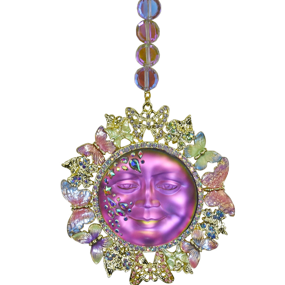 Around the moon dances a kaleidoscope of pastel butterflies weaving dreams with each flutter of their delicate wings.
