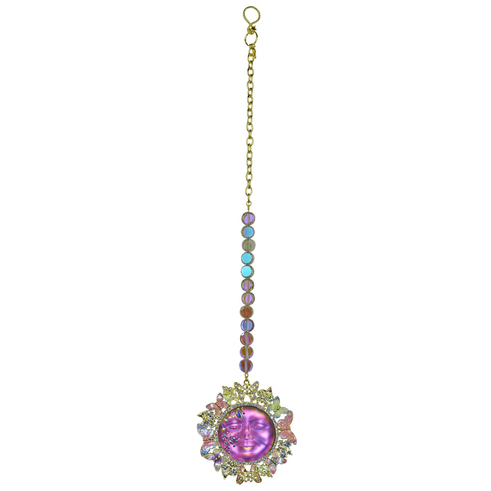 The moon stone works it's color changing magic with twinkling fancy cut stones cascading down it’s face.
