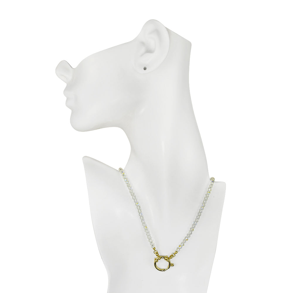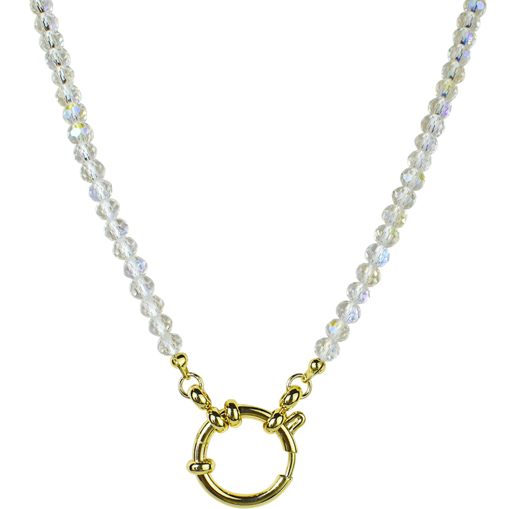 Crystallized 4mm Beaded Sailor Clasp Spring Ring Charm 18" Necklace (Goldtone/Crystal AB)