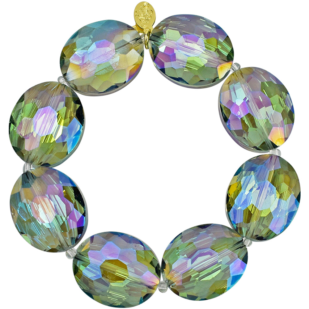 Empress Oval Stretch Bracelet (Goldtone/Green Iridis)