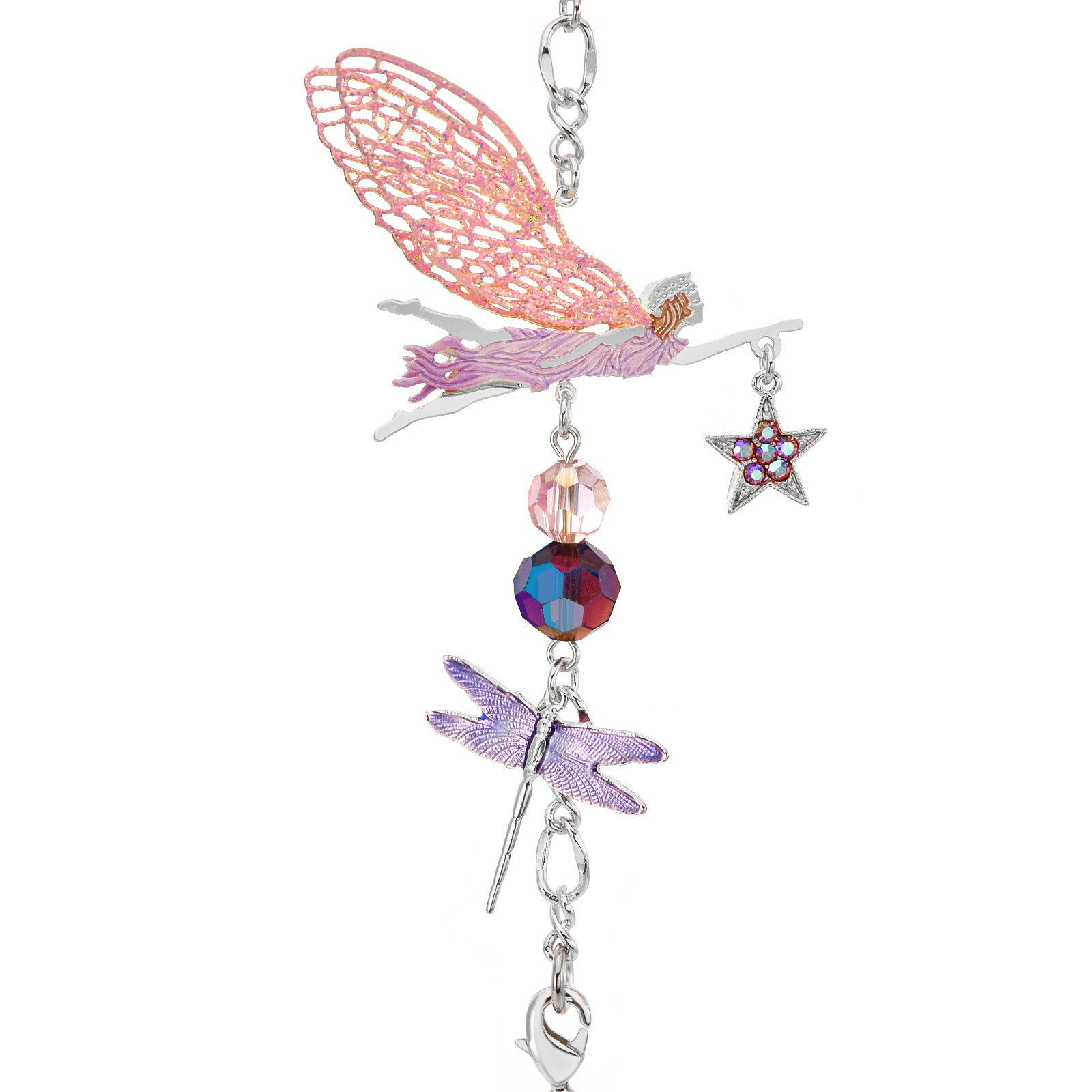 Suspended in enchantment, this shimmer captures a radiant fairy with sparkling wings that glimmer like moonlit dew and gracefully carrying a twinkling star and a magical dragonfly.