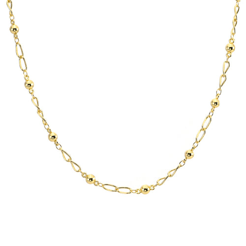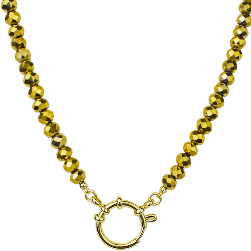 Crystalized 6mm Beaded Sailor Clasp 18" Charm Necklace (Goldtone/Light Gold)
