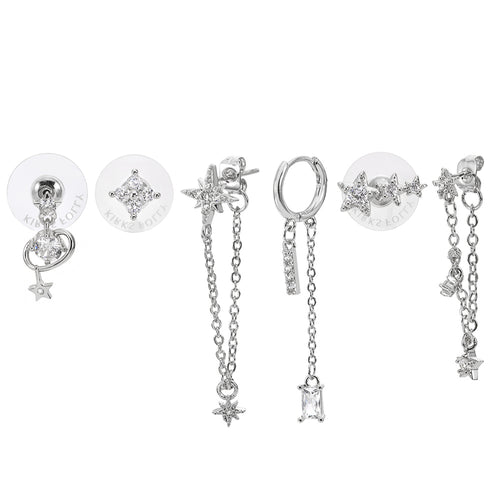 Solar Galaxy 6 Piece CZ Earrings Set (Sterling Silvertone)