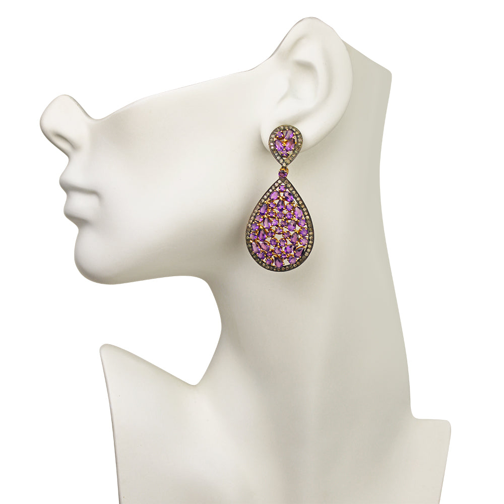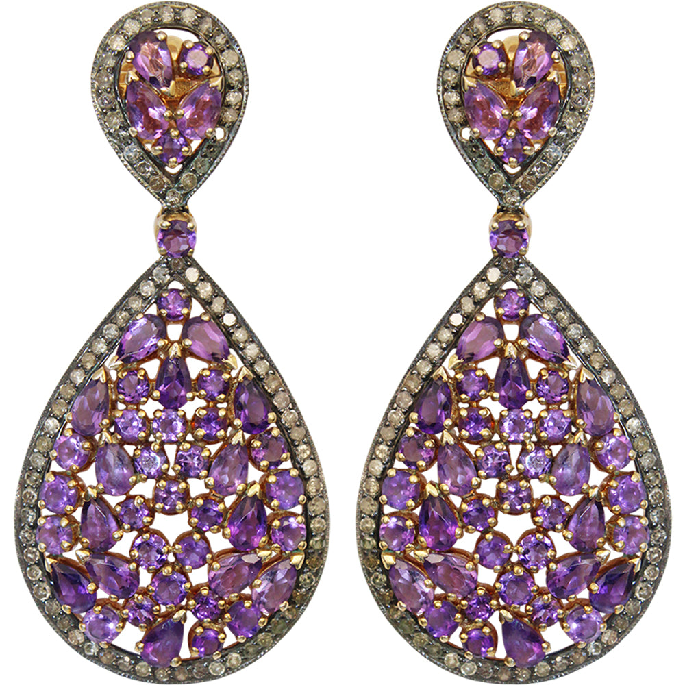 Fit for a queen, these exquisite earrings showcase teardrops of radiant faceted amethysts, their deep violet hues glowing with a regal elegance.