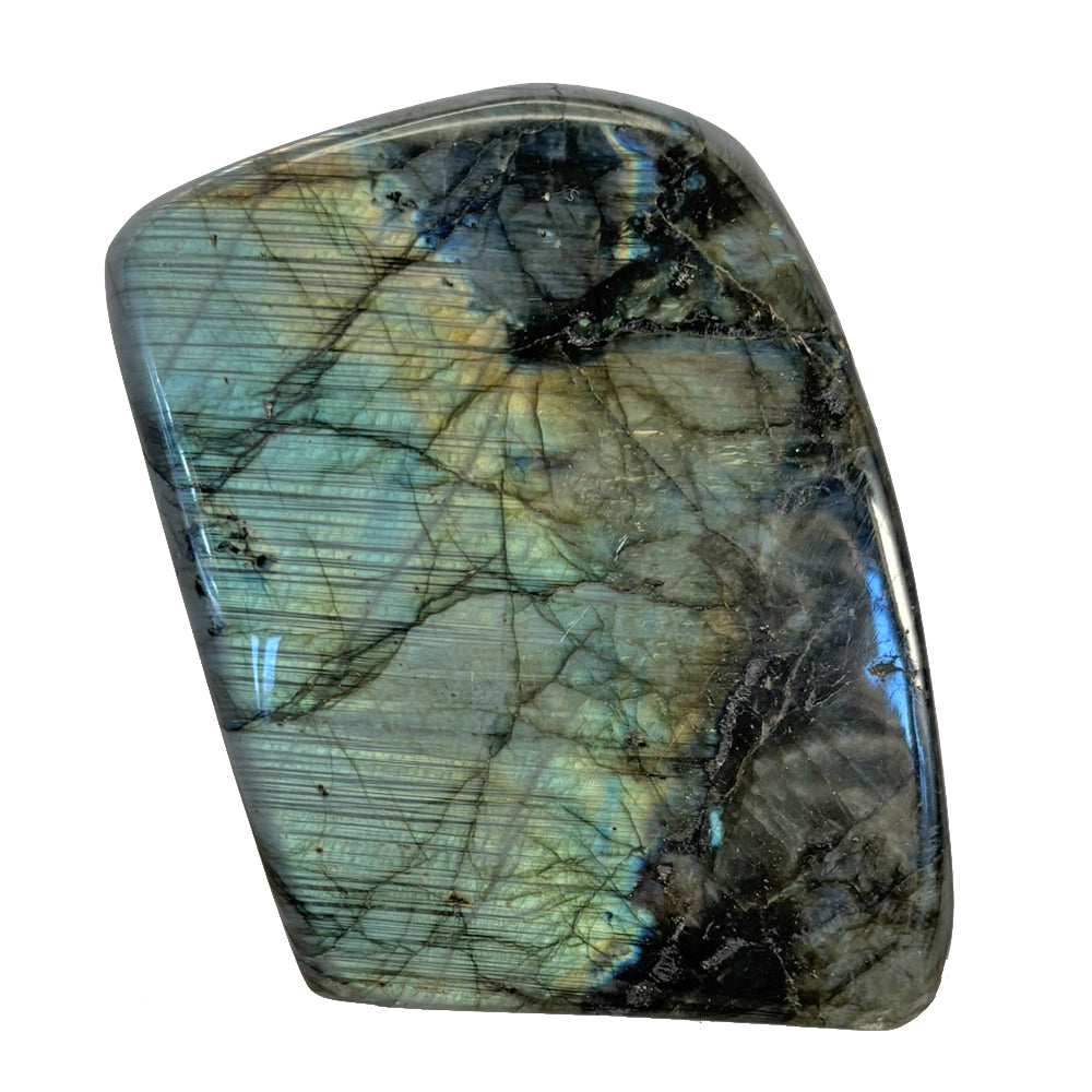 Amidst the vast cosmic tapestry, a free form Labradorite gemstone reveals itself as a celestial portal.