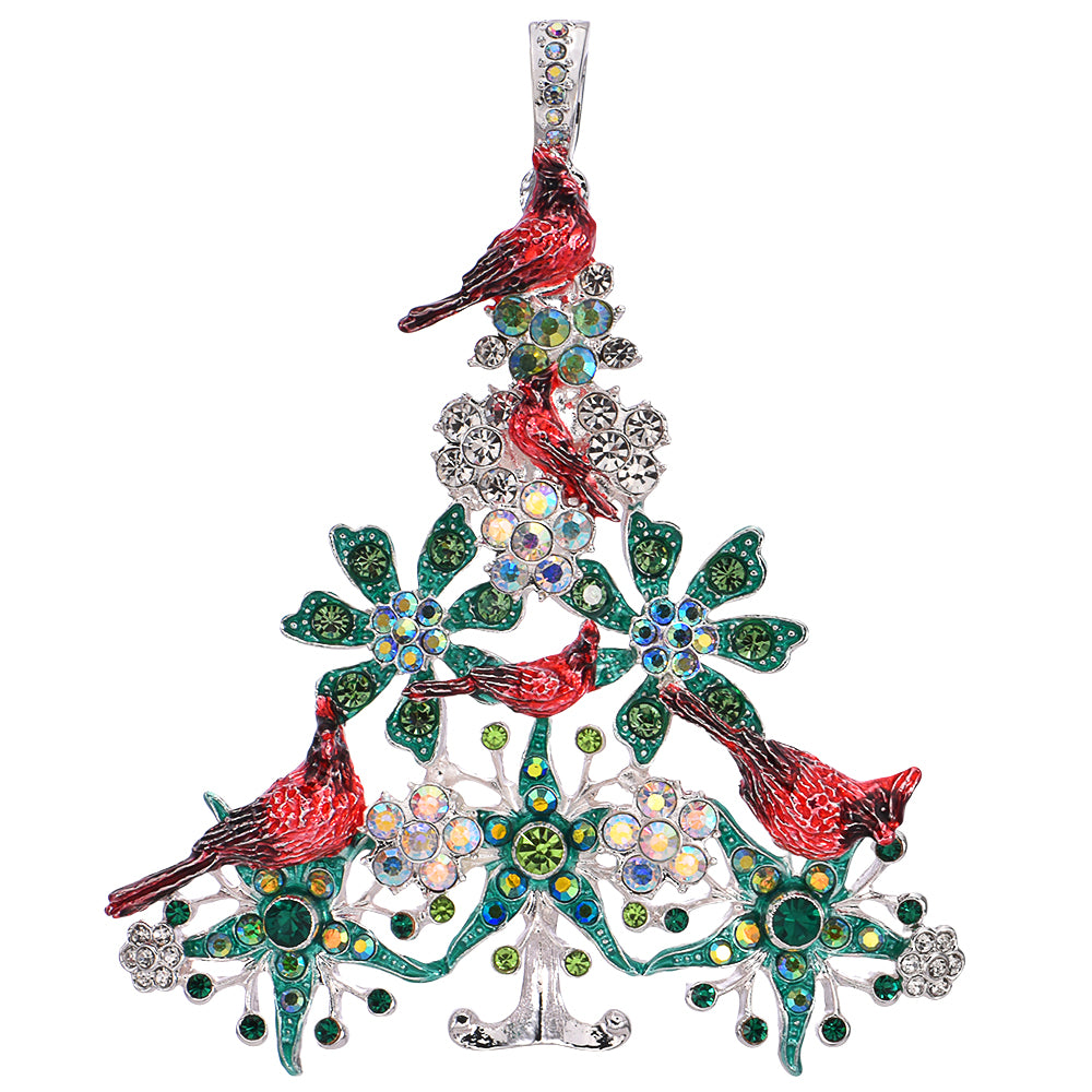 Precious Memories Cardinal Holiday Tree Foldover Pendant (Sterling Silvertone)