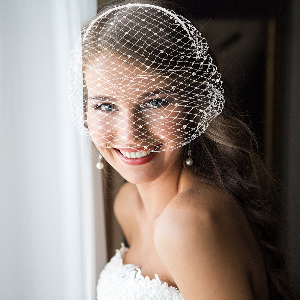 From it flows a veil studded with glistening stones, each one like a shooting star captured in the night sky.