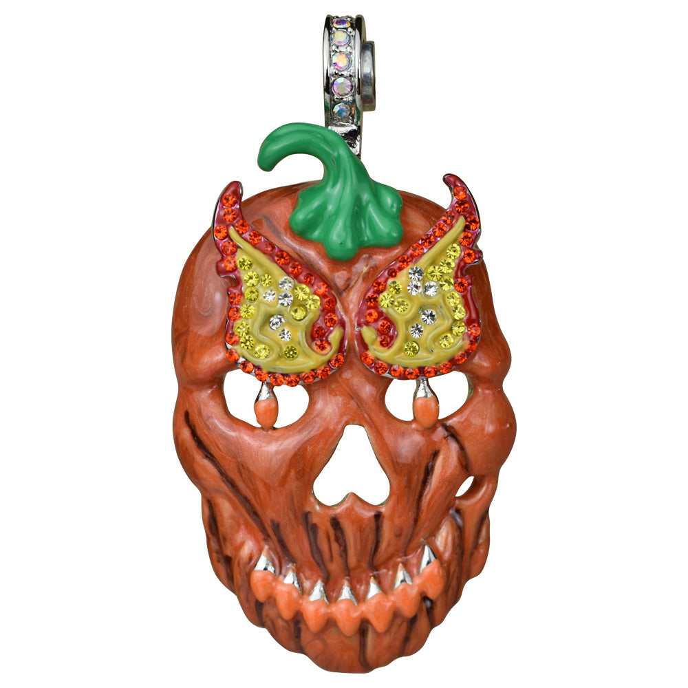 The Burning Man Pumpkin Magnetic Enhancer speaks for himself! He is a fiery orange pumpkin with flames of yellow and orange stones emblazoned on his forehead.