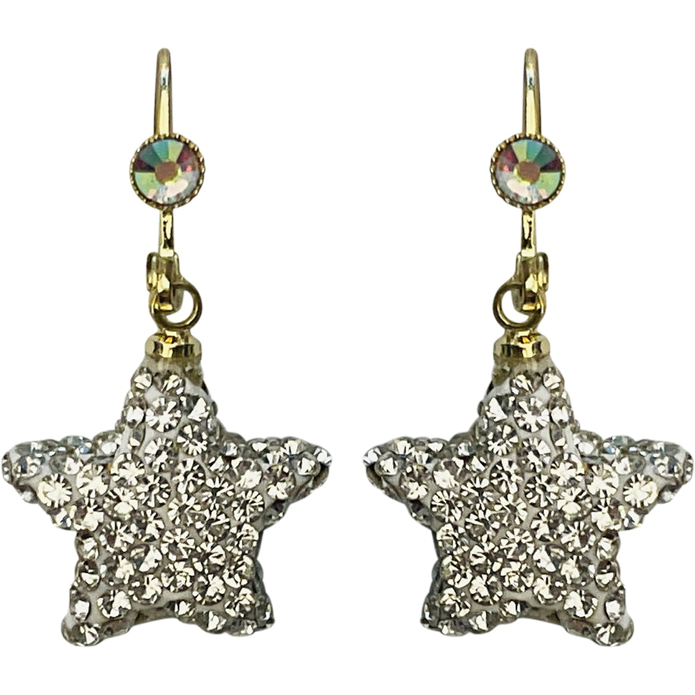 "One Of A Kind" Crystal Pave Star Leverback Earrings (Goldtone/Crystal)