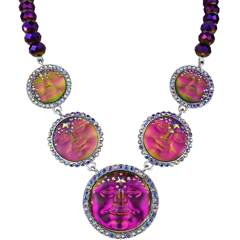 In the tapestry of the cosmos, there exists a wonderous creation, a single strand multi colored faceted crystal bead necklace that holds five graduated ever changing mystic moons.