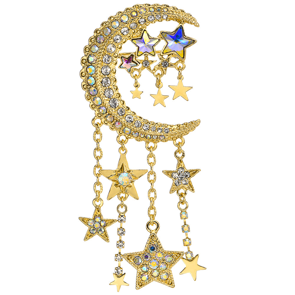 Dancing Starlight Moon Pin Pendant (Goldtone)