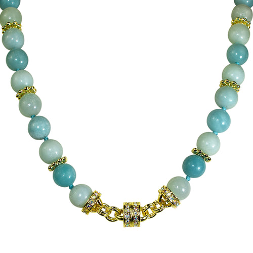 Precious Amazonite 10mm Magnetic Interchangeable Necklace (Goldtone/Amazonite)