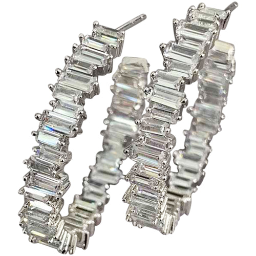 Hestia Inside and Out CZ Medium Hoop Pierced Earrings (Silvertone)