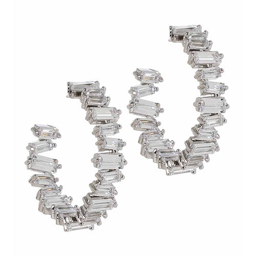 Hestia Inside and Out CZ Small Hoop Pierced Earrings (Silvertone)