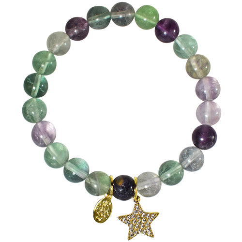 Precious Fluorite CZ Starlight 8mm Stretch Bracelet (Goldtone)