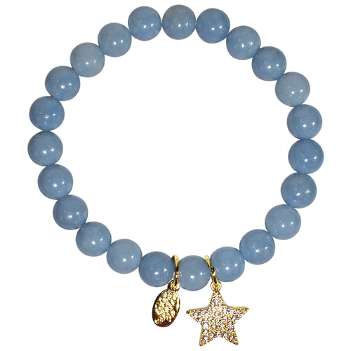Precious Angelite CZ Starlight 8mm Stretch Bracelet (Goldtone)