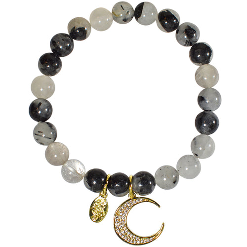 Glass Seaview Moon Lepidolite 10mm Stretch Bracelet (Goldtone/Volcano)