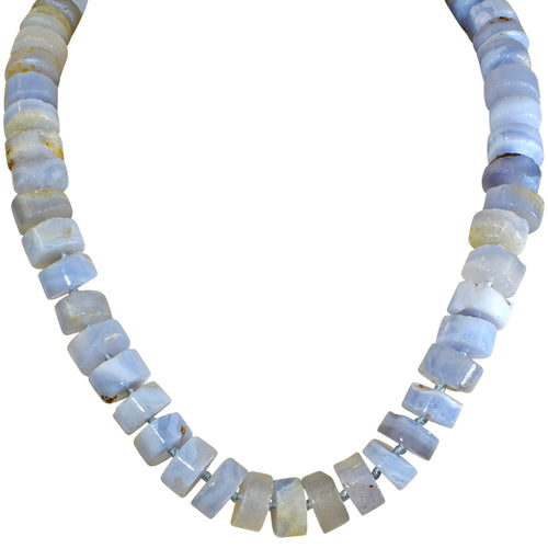 Precious Blue Lace Agate Gem Stone Necklace(.925 Sterling Silver/Blue Lace Agate)