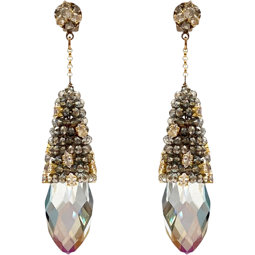 Inspired by Rhea, the Titaness mother of the gods, these earrings feature large faceted crystals that gleam like fragments of ancient starlight.